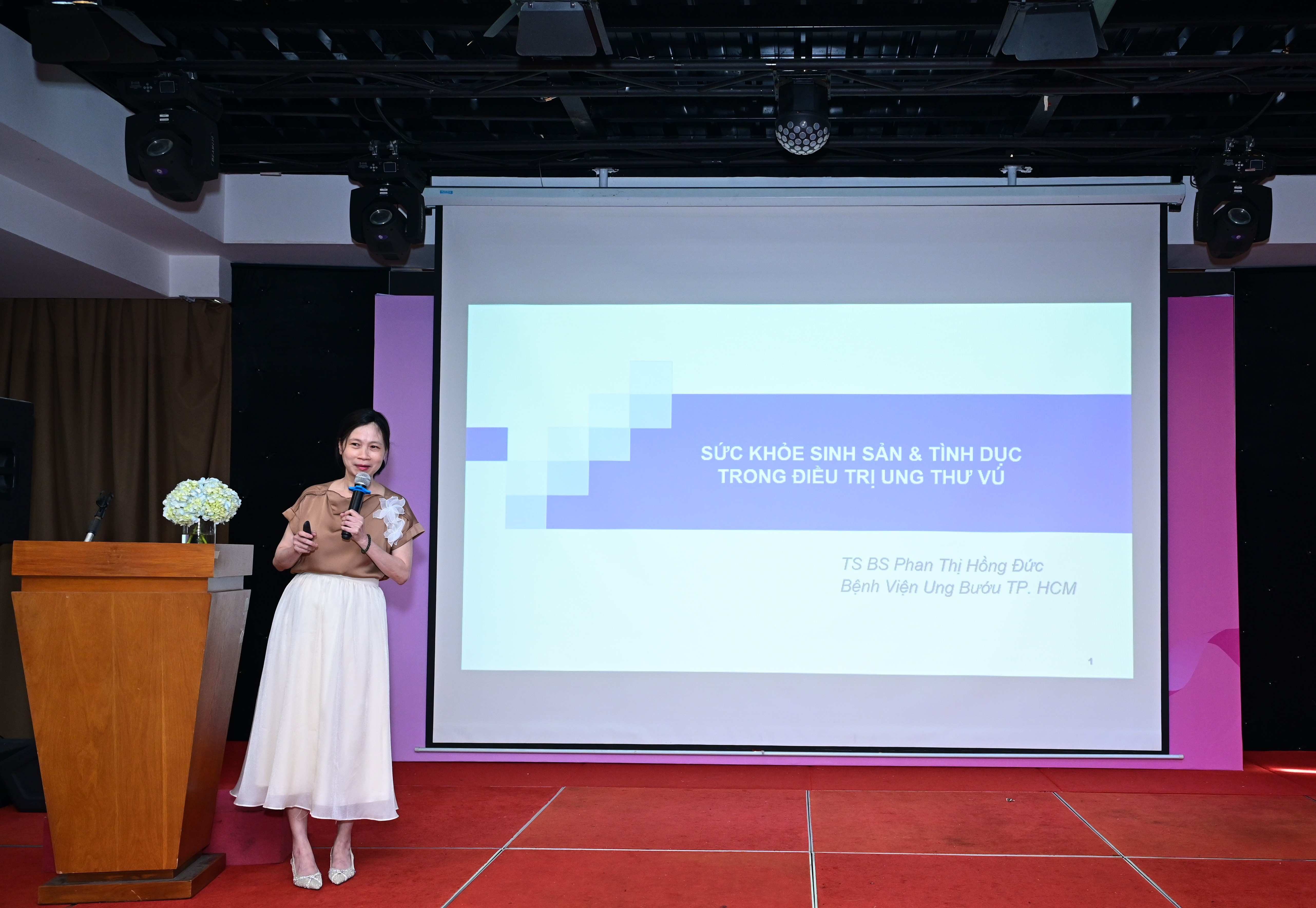 Tại chương trình, người bệnh được lắng nghe hai bài chia sẻ chuyên môn quan trọng: PGS.TS.BS Huỳnh Quang Khánh cung cấp những kiến thức về cách nhận diện và vượt qua các khủng hoảng trong điều trị ung thư vú từ những biến động thể chất đến các áp lực tâm lý mà người bệnh thường gặp. TS.BS Phan Thị Hồng Đức mang đến những thông tin khoa học, rõ ràng và cởi mở về các vấn đề sức khỏe sinh sản, đời sống tình dục và chăm sóc toàn diện trong điều trị ung thư vú.